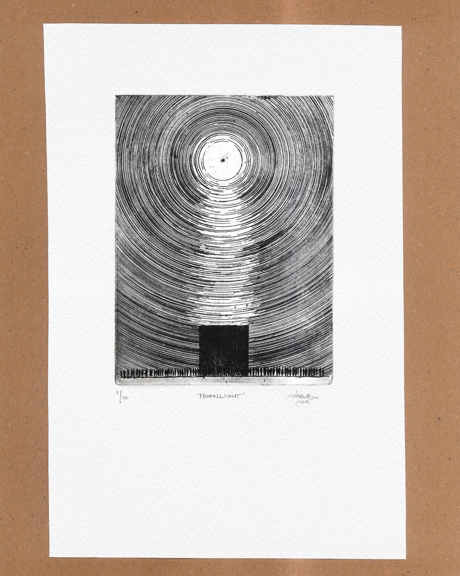 Zinc plate intaglio etching on Canson 300 gsm cold-pressed archival paper.